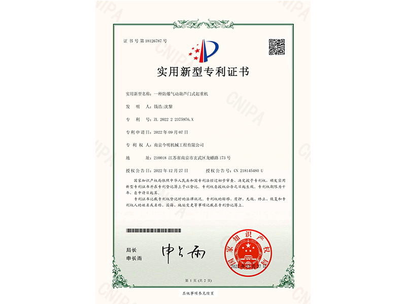 2025-03-21南京今明機械工程有限公司為中鐵山東李樓煤礦,定制4臺32t氣動葫蘆用于盾構機組裝
